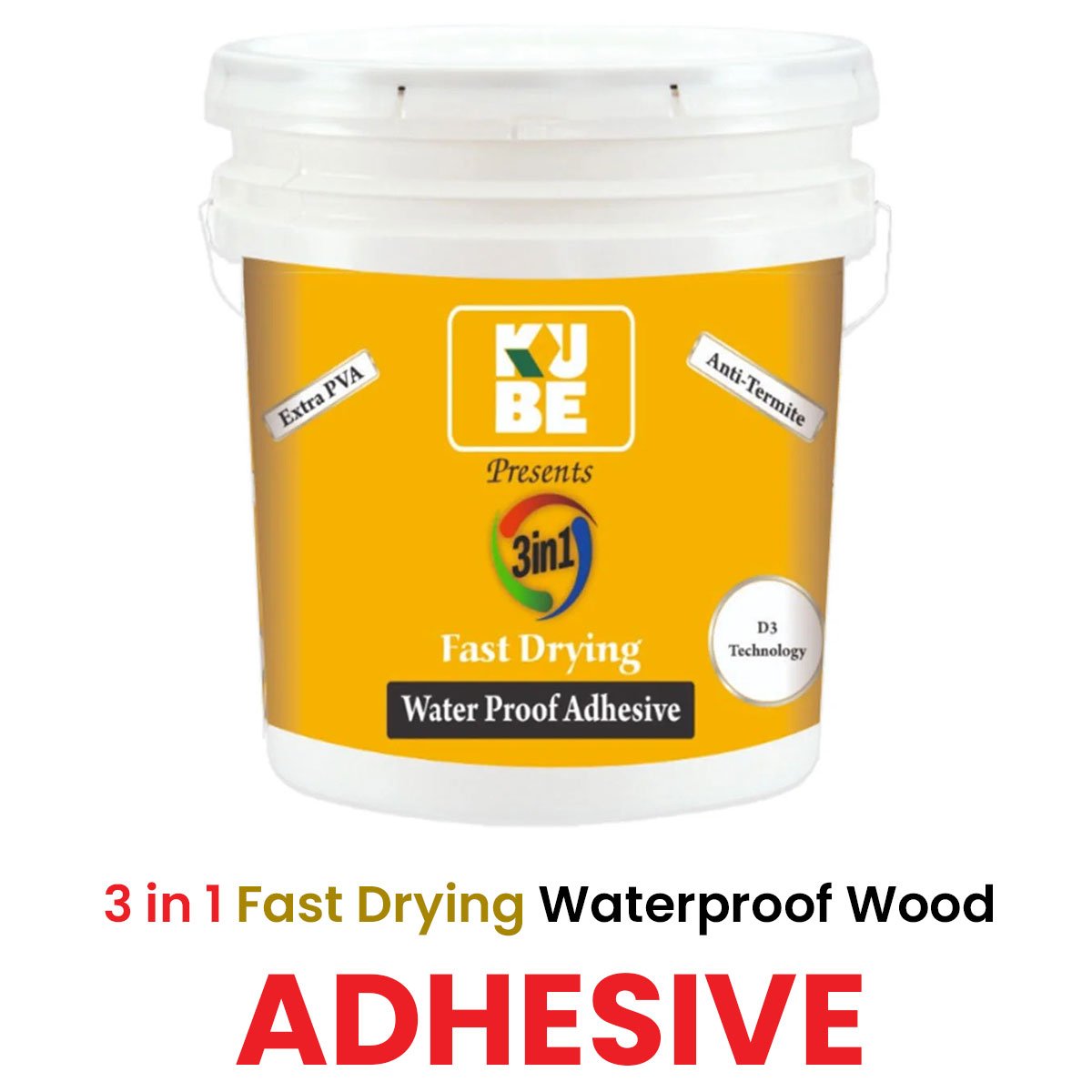 A premium glue, KUBE 3in1 Fast Drying Water Proof glue is made for solid bonding on wood, furniture, plywood, boards, and other surfaces. It is more robust, dependable, and long-lasting because of its superior D3 Technology, Extra PVA, and Anti-Termite Protection.
